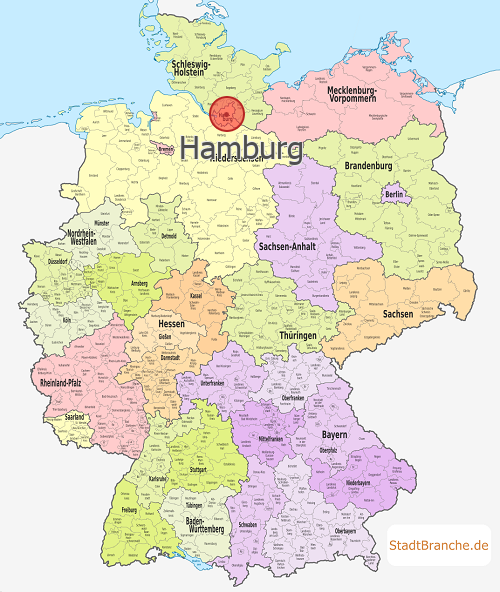 Die Freie und Hansestadt Hamburg ist als Stadtstaat zugleich eine Kommune und ein Land der Bundesrepublik Deutschland. Ferner ist Hamburg eine Einheitsgemeinde und eine kreisfreie Stadt. Hamburg ist mit 1,76 Millionen Einwohnern die zweitgrößte Stadt Deutschlands, die drittgrößte im deutschen Sprachraum sowie die achtgrößte in der Europäischen Union und dabei die größte, die nicht Hauptstadt eines Staates ist. Hamburg gliedert sich in sieben Bezirke. Die Stadt bildet das Zentrum der fünf Millionen Einwohner zählenden Metropolregion Hamburg.| Landkreis | Kreisfreie Stadt Hamburg |