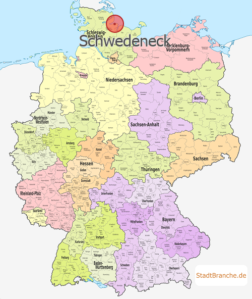 Schwedeneck ist eine Gemeinde im Kreis Rendsburg-Eckernförde in Schleswig-Holstein. Sie liegt auf der Halbinsel Dänischer Wohld und umfasst die Ortschaften Birkenmoor, Dänisch-Nienhof, Elisendorf, Grönwohld, Haschendorf, Hohenhain, Jellenbek, Krusendorf, Kuhholzberg , Sprenge, Stohl und Surendorf.| Landkreis | Landkreis Rendsburg-Eckernförde |